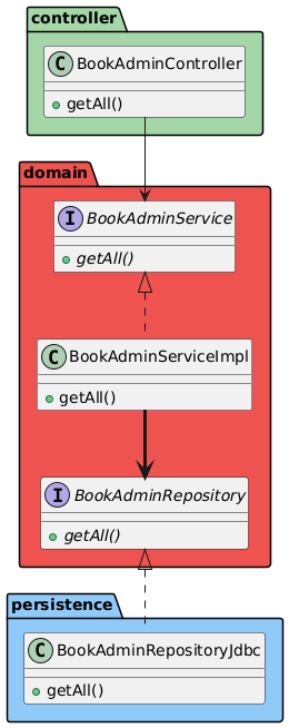 Este enfoque tiene la ventaja de tener todo separado, con lo que podemos realizar acciones diferentes según el rol del usuario. Por ejemplo, podríamos hacer que el método getAll() del servicio de libros del administrador fuera diferente del de usuario.