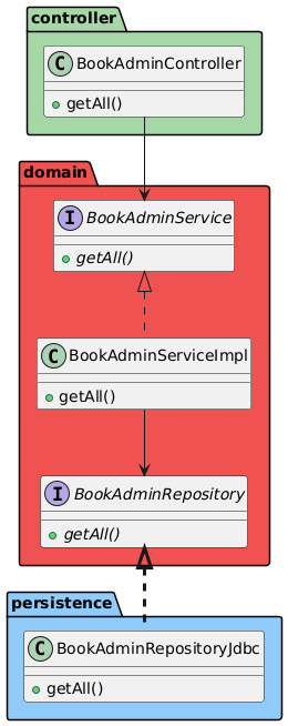 ¿Por qué el primero lanza una excepción y el segundo no? La razón es sencilla; el primero lo utilizaremos en el caso de uso de recuperar los datos de un libro que asumimos que existe. Por ejemplo, cuando recibimos la petición GET /api/books/123456789. En ese caso, nuestra aplicación devolverá un 404 indicando que ese libro no existe.