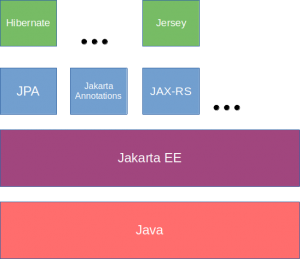 En realidad, cuando hacemos una aplicación Java utilizamos esas implementaciones (Hibernate, Jersey…), no las especificaciones de Jakarta.