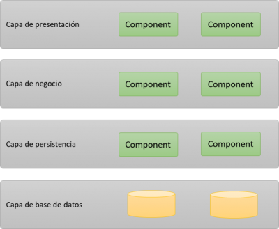 Nuestra capa de presentación contendrán los controladores, que serán los encargados de tratar las peticiones y las respuestas. En la capa de negocio estarán los servicios que se encargarán de conectar con la capa de persistencia para tratar los datos. Por último, la capa de persistencia será la encargada de conectar con nuestros datos.