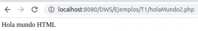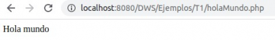 Accede a http://localhost/DWS/ejemplos/T2/holaMundo2.php desde el navegador y comprueba el resultado.