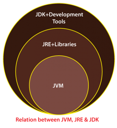 - Java Runtime Enviroment (JRE): Entorno de ejecución de Java. Contiene la JVM y otras herramientas necesarias para ejecutar las aplicaciones Java. JRE no posee el compilador ni las herramientas para desarrollar las aplicaciones Java, con lo que solo se puede ejecutar el código, pero no desarrollarlo.