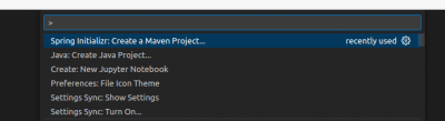 En nuestro caso, vamos a utilizar la extensión de VSC Spring Initializr. Para crear el proyecto abrimos la barra de comandos (Ctrl + Shift + p) y seleccionando Spring Initializr: Create a Mave Project: