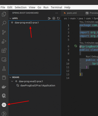 - Spring Boot Dashboard: proporciona un explorador en la barra lateral donde podemos ver todos los proyectos Spring Boot de un espacio de trabajo. También podemos iniciar, detener o depurar rápidamente un proyecto