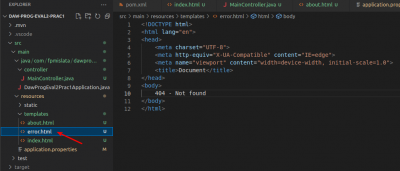 Para añadir nuestra propia página de error usando Thymeleaf, simplemente tenemos que crear el archivo error.html en la carpeta templates: