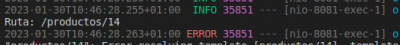 Si abrimos la ruta, por ejemplo, /productos/25, veremos como nuestro método recoge el valor de dicho id (de nuevo, olvídate por ahora de los errores que muestra Spring):
