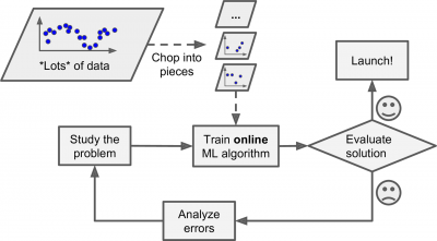 También se pueden utilizar este tipo de sistemas cuando el volumen de datos para entrenar es enorme. El algoritmo carga parte de los datos, ejecuta un paso de entrenamiento con esos datos y repite el proceso hasta que ha procesado todos los datos.