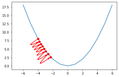 Un parámetro importante en el descenso de gradiente es el tamaño de los pasos, determinado por el hiperparámetro tasa de aprendizaje. Si la tasa de aprendizaje es demasiado pequeña, el algoritmo tendrá que pasar por muchos pasos para converger (si llega a hacerlo antes de terminar las iteraciones), lo cual llevará mucho más tiempo.