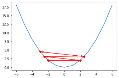 Por el contrario, si la tasa de aprendizaje es demasiado grande, el algoritmo puede no converger nunca.