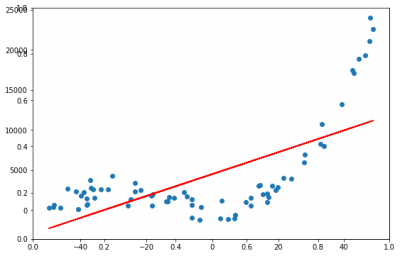 Si intentamos sacar la recta de regresión, nuestras predicciones no serán muy precisas: