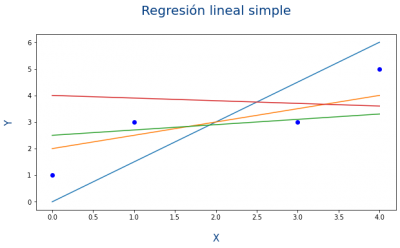 Para saber qué recta se ajusta mejor a nuestros datos, necesitamos calcular el error de cada una de ellas y quedarnos con el que sea menor. Para calcular el error utilizamos alguna función (función de coste).