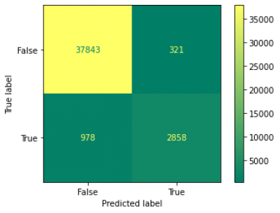 from sklearn.metrics import plot_confusion_matrix plot_confusion_matrix(model, X_train, y_train_5, cmap="summer") plt.show()