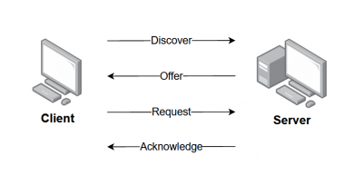 El proceso de asignación de una dirección IP por parte de un servidor DHCP sigue una secuencia de pasos conocida como DORA, que son las siglas de Discover, Offer, Request, Acknowledge.